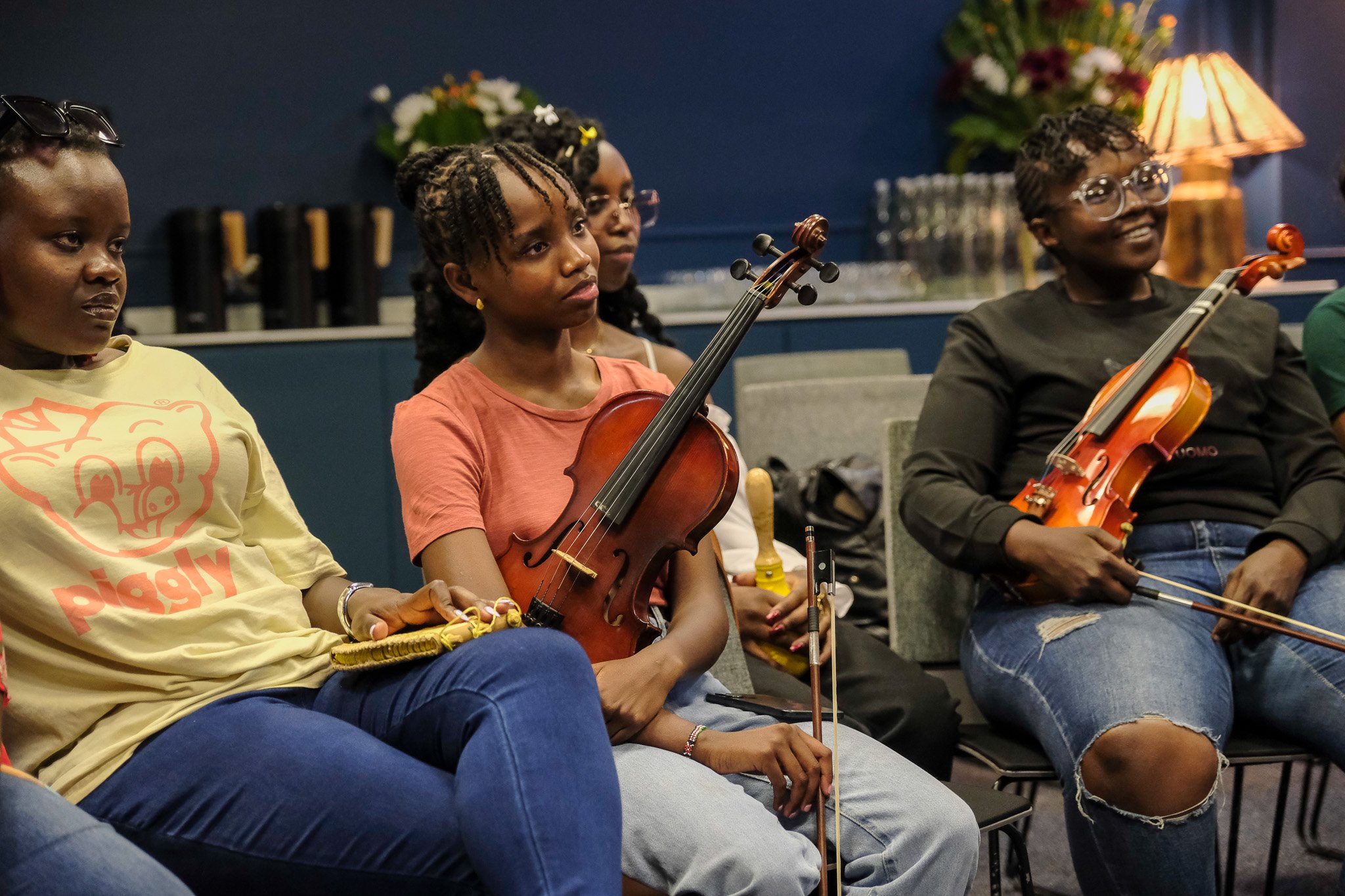 Over ten immersive sessions, participants explored the mind-body connection through embodiment practices, journaling, creative reflection, and emotional intelligence training. The module encouraged musicians to align their daily habits and artistic goals with personal integrity and confidence. Guest experts added depth and inspiration: researchers from the University of Wisconsin’s Center for Healthy Minds shared neuroscience-based approaches to mindfulness and resilience, while Kenyan rugby coach Paul Odera illustrated how teamwork and discipline in sport reflect the mindset of successful artists. Mentor Dr. Wanjiku Mwotia stood out as a role model for young women professionals, guiding participants to embrace leadership grounded in authenticity and empathy.